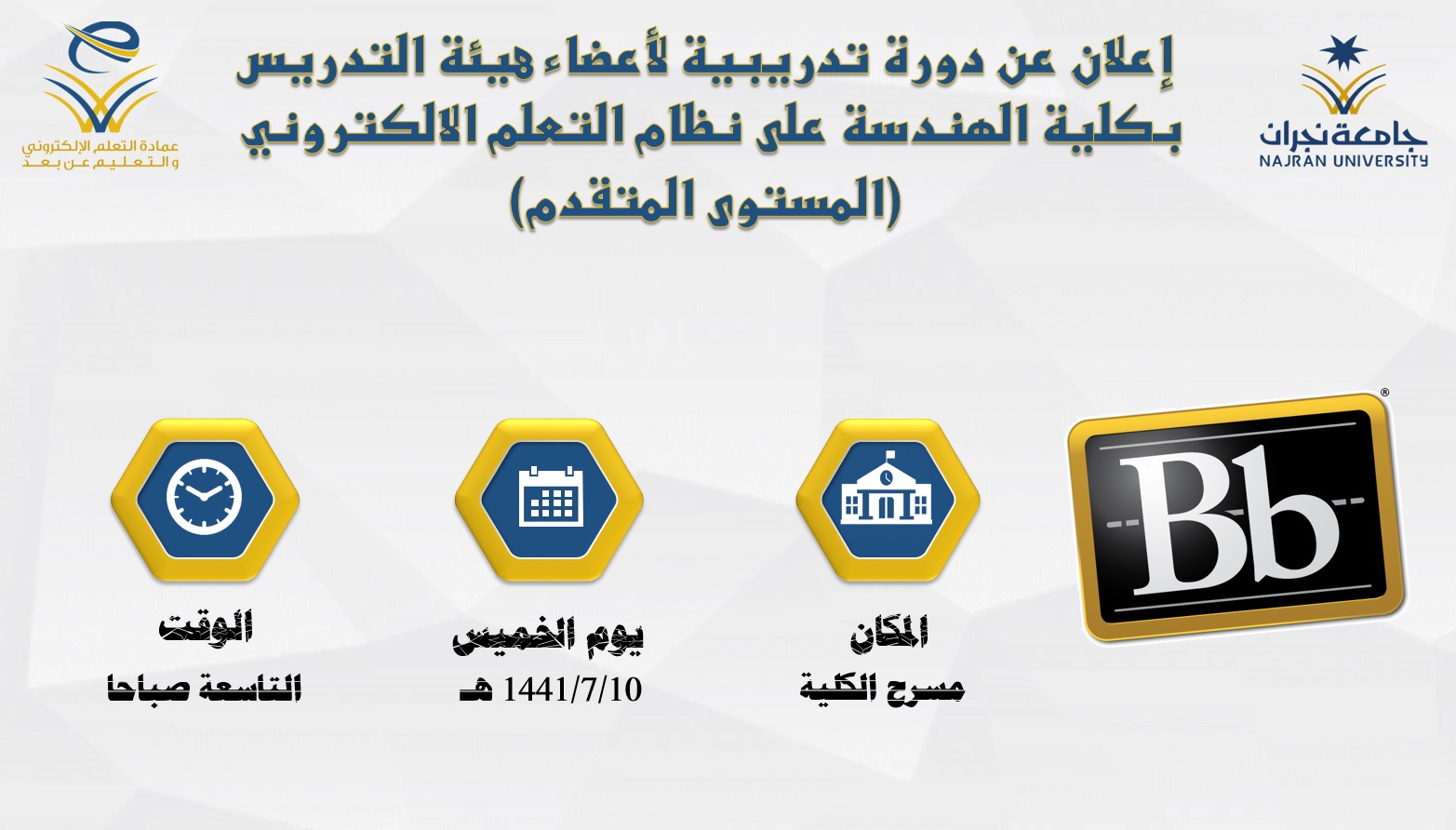 إعلان عن دورة تدريبية لأعضاء هيئة التدريس بكلية الهندسة على نظام التعلم الالكتروني المستوى المتقدم